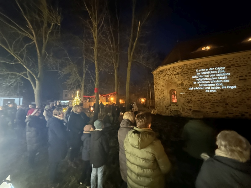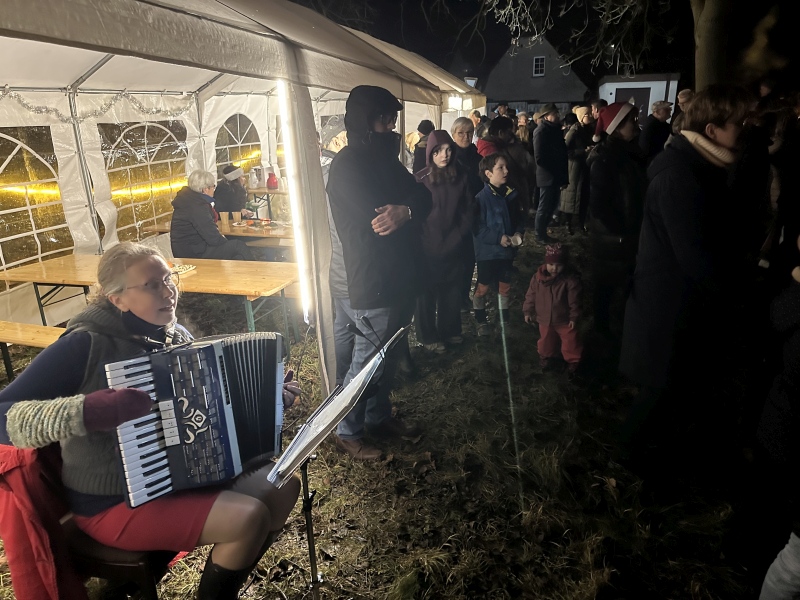 Unser Dorffest zum Advent: alljährlich trifft sich das Dorf am Samstag vor dem dritten Advent vor der Kirche und singt gemeinsam Advents- und Weihnachtslieder. Es gibt natürlich Glühwein und gegrillte Würste und auch eine als Weihnachtsmann verkleidete Frau aus dem Dorf kommt mit Geschenken für die Kinder. In der Kirche gibt es verschiedene Angebote um weihnachtlichen Klimbim zu basteln. In diesem Jahr kamen etwa 90 Leute zum Fest. Damit das mit dem Singen auch klappt, trifft sich ein harter Kern von 20 bis 40 Leuten an den drei Donnerstagen davor in der Kirche, um gemeinsam die Lieder unter Zugabe von reichlich Glühwein zu üben.